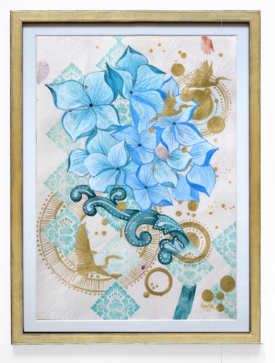 Gold frame, signed, and includes a certificate of authenticity
